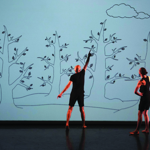 C’est l’histoire d’une quête imaginée par le chorégraphe Sylvain Riéjou et l’auteur-illustrateur Hervé Walbecq : celle de deux personnages guidés par une étrange créature, Le Poisson qui vivait dans les arbres. Un monde animé, mi-animal mi-végétal, projeté sur grand écran, compose les paysages fabuleux dans lesquels ils s’aventurent. Une joyeuse traversée dans le vivant.